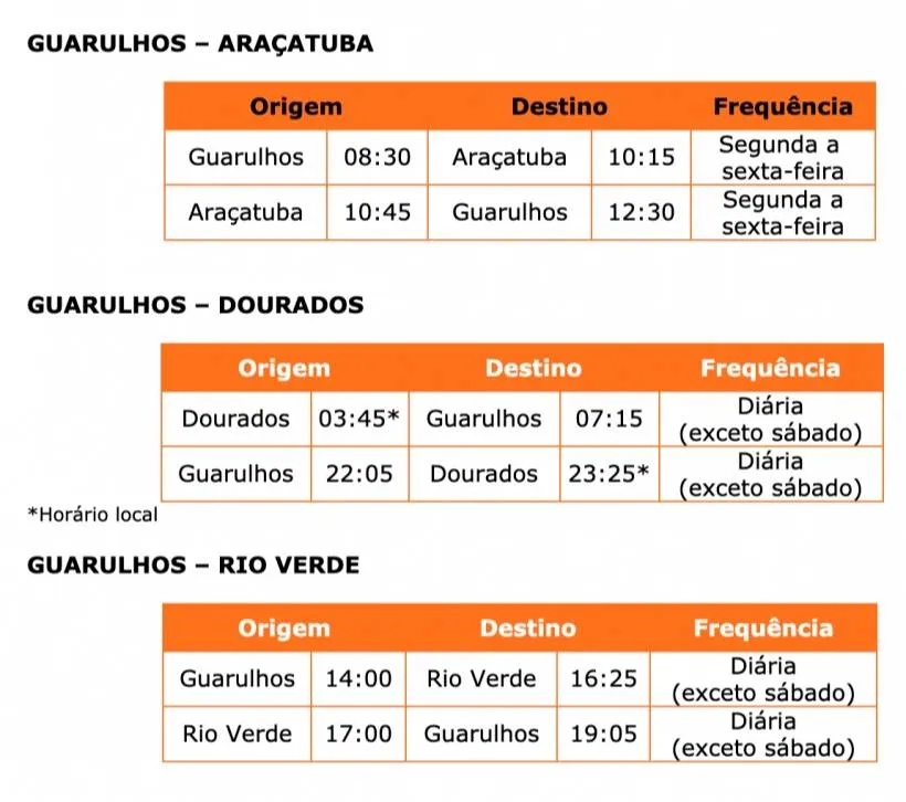 Confira o cronograma de voos:
